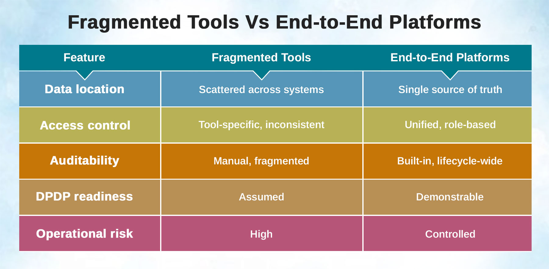 In practice, many organisations grew digital by adding tools as needs evolved. For a time, this approach enabled speed and flexibility; however, under DPDP, such fragmented digitisation has now emerged as a structural weakness, limiting control, traceability, and accountability.